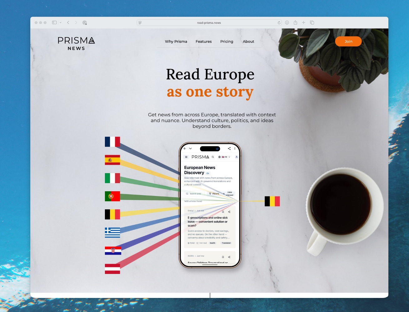 Europe is increasingly connected through shared political systems, markets, and cultural exchanges, yet news remains largely siloed along national lines. Recognising this persistent divide, I created Prisma News to bridge these gaps. By leveraging translation technology and expert editorial curation, Prisma ensures stories are presented as authentically as possible, bridging linguistic divides and allowing readers to experience diverse local perspectives firsthand. In doing so, Prisma doesn't just aggregate news, it brings the continent's diversity to a wider audience, fostering shared understanding and unity instead of reinforcing existing divisions.